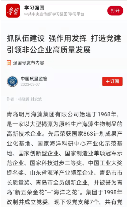 黨建強,企業(yè)強。做好黨建工作,是廣大民營企業(yè)良性向好發(fā)展的成功密碼。青島明月海藻集團自1998年改制之初,即成立了集團黨委,25年來,集團始終堅持“圍繞生產(chǎn)抓黨建,抓好黨建促發(fā)展”的工作原則,積極深化學習教育,筑牢思想根基,全力推進黨建與經(jīng)營同頻共振,更感受到黨建成果真抓實干所釋放出來的強大動能,構(gòu)建了獨具明月特色的“藍色強企”黨建格局。