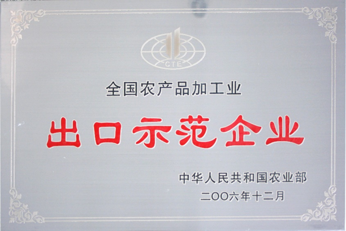 2006年12 月,國家農(nóng)業(yè)部授予明月海藻集團“全國農(nóng)產(chǎn)品加工業(yè)出口示范企業(yè)”稱號